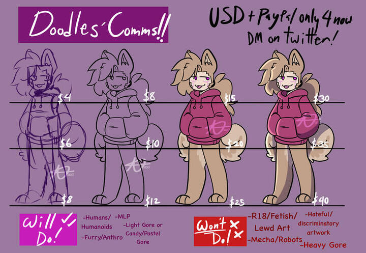 -If you would like to see any more of my artwork, please let me know!!-please acknowledge that im a MINOR.-i have the ability to say no to a commission.-if you argue about my prices at all, you will not be considered a client and you will be blocked, same goes for if you argue about what i will/won’t draw.*-i tend to procrastinate heavily, so please, if you want to check up and see what ive got so far, PLEASE do, it will remind me to keep going.WILL DO: